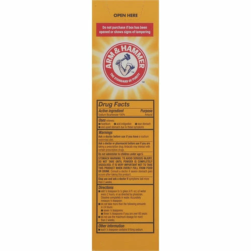 Active Ingredients: Sodium Bicarbonate (100 %), Antacid. Active Ingredients: Sodium Bicarbonate (100 %), Skin Protectant. Sodium Bicarbonate.