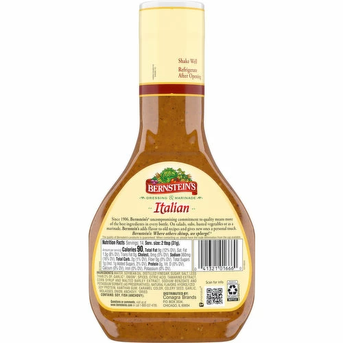 Since 1906. An old-world original. Where others skimp…we splurge! Since 1906, Bernstein’s uncompromising commitment to quality means more of the best ingredients in every bottle. On salads, subs, basted vegetables or as a marinade, Bernstein’s adds flavor to old recipes and gives new ones a personal touch. Bernstein’s: Where others skimp, we splurge!