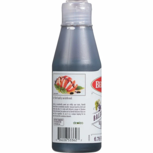 Dal 1865. Boasting an exceptionally sweet yet mildly sour taste, Bertolli Balsamic Glaze is a remarkably versatile treasure loved by chefs and everyday cooks alike. It is made with Balsamic vinegar of Modena from Italy. Get inspired, be creative and try Bertolli Balsamic Glaze on meats, fish or vegetables. Or, use it as a unique topping for ice creams, fruits and sumptuous desserts. Food safe.