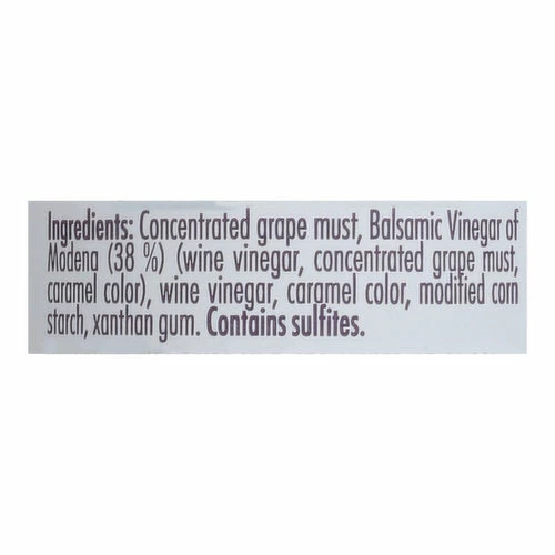 Concentrated Grape Must, Balsamic Vinegar of Modena (38%) (Wine Vinegar, Concentrated Grape Must, Caramel Color), Wine Vinegar, Caramel Color, Modified Corn Starch, Xanthan Gum.