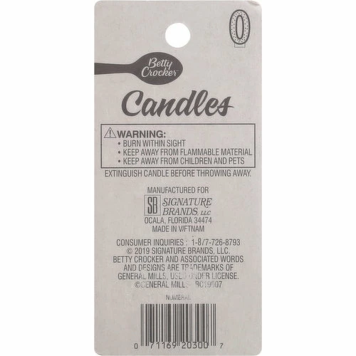 Betty Crocker Birthday Candle, Numeral 0, 3 Inch, 1 Each