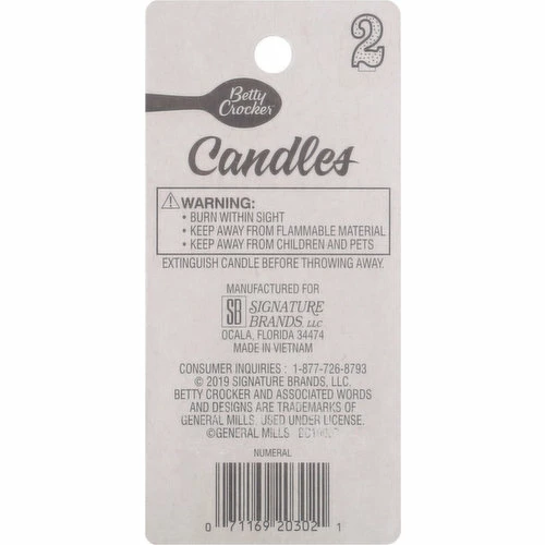 Betty Crocker Birthday Candle, Numeral 2, 3 Inch, 1 Each