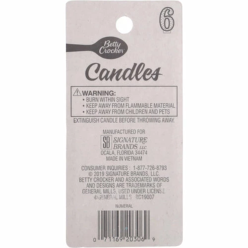 Betty Crocker Birthday Candle, Numeral 6, 3 Inch, 1 Each
