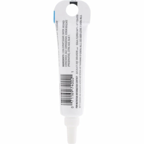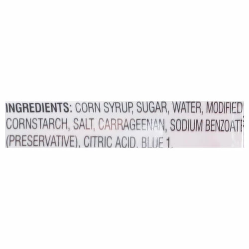 Corn Syrup, Sugar, Water, Modified Cornstarch, Salt, Carrageenan, Sodium Benzoate (Preservative), Citric Acid, Blue 1.