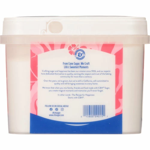 Make your day a little sweeter with C&H® Granulated Sugar. We refine our sugar into extra fine crystals so you can easily stir it, sprinkle it, or mix it into recipes. Our Easy Baking Tub will make your baking more convenient. C&H® Granulated Sugar is scoopable directly from the tub which clicks closed for confident resealing. Plus, the rectangular tub is easy to store, and it even has windows to see when the sugar is running low. The Recipe for Happiness Starts with C&H®.