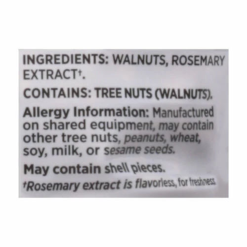 Walnuts, Rosemary Extract (Rosemary Extract is Flavorless, for Freshness).
