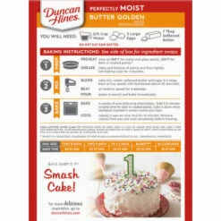 Duncan Hines Perfectly Moist Butter Golden Cake Mix has rich, buttery flavor in every bite that brings the taste your family adores to the table. Topping this golden cake with your favorite Duncan Hines frosting will raise dessert time to the next level. This boxed cake mix can be prepared in many shapes and sizes; use it for birthday cake, cake pops or as a cupcake mix. Baking your next creation is easy. Just add water, eggs and butter, then mix and pour into your pan, following the baking time for your pan’s size and shape. Each box makes one 13 by 9 inch cake or 24 cupcakes. From a traditional layer cake to single serve desserts, Duncan Hines has you covered when you’re ready to bake and create.