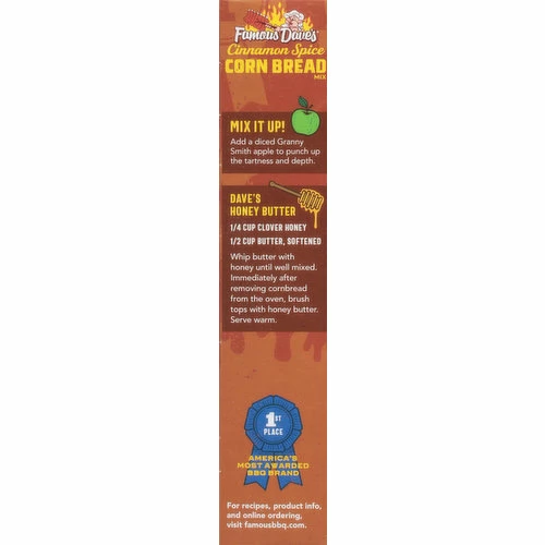 The same legendary honey-buttered corn bread served in my BBQ restaurants can now make you a legend in your own home. Famous Dave. Dave Anderson BBQ hall of fame. This package is sold by weight, not volume. You can be assured of proper weight even though some settling of contents normally occurs during shipping and handling.