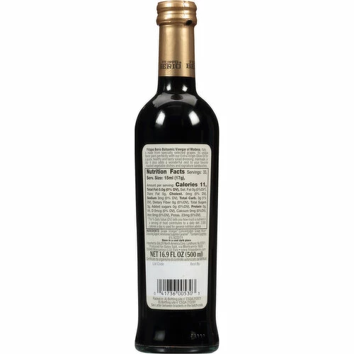 BALSAMIC VINEGAR: Made from specially selected grapes, its unique flavor adds a wonderful zest to your favorite dishes. It pairs perfectly with Filippo Berio Extra Virgin Olive Oil for a quick, healthy, and tasty salad dressing, marinade, or dip.A PASSION FOR PERFECTION: over 150 years of the highest possible standards go into every authentic olive oil, pesto, glaze, and vinegar, designed for those who want only the best in their kitchens.SUGGESTED USES: in dressings, sauces, gravies, or marinades; splashed on meats, fish, vegetables, sushi, and sashimi; drizzled over Parmesan, fresh fruit, or ice cream.