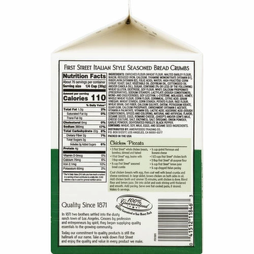 Per 1/4 Cup Serving: 110 calories; 0 g sat fat (0% DV); 380 mg sodium (17% DV); 3 g sugars. Quality since 1871. Quality Since 1871: In 1871 two brothers settled into the dusty ranch town of Los Angeles. Grocers by profession and entrepreneurs by spirit, they began supplying quality essentials to the growing community. Today our commitment to quality products is still the hallmark of our name. Take a walk down First Street and enjoy the quality and value in every product we make. 100% Guaranteed: Quality guaranteed or your money back. Packed in the USA.