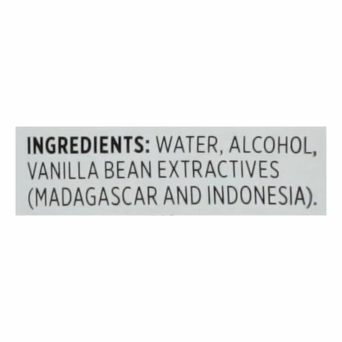 Water, Alcohol, Vanilla Bean Extractives (Madagascar and Indonesia).