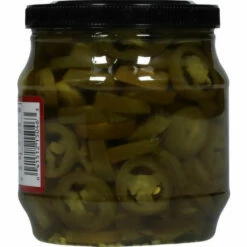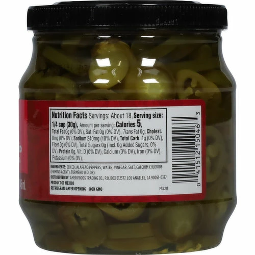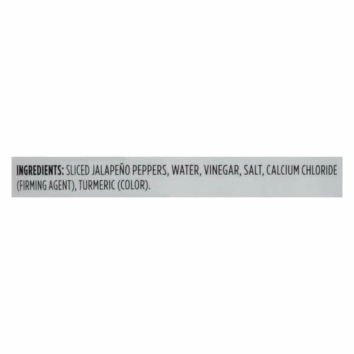 Chili Peppers, Water, Vinegar, Salt, Calcium Chloride, (Firming Agent), Turmeric (Color).