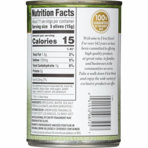 Ripe Olives, Water, Sea Salt, Ferrous Gluconate (an Iron Derivative).