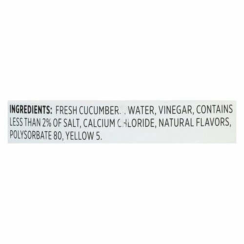 Fresh Cucumber, Water, Vinegar, Contains Less than 2% of Salt, Calcium Chloride, Natural Flavors, Polysorbate 80, Yellow 5.