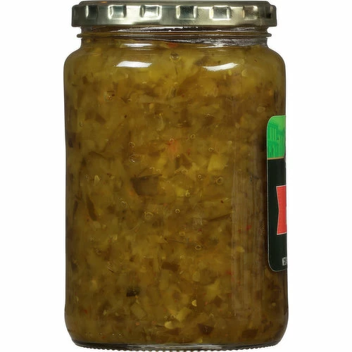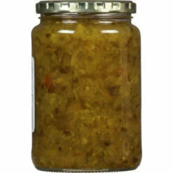 Cucumbers, High Fructose Corn Syrup, Water, Vinegar, Salt, Contains Less than 2% of Lactic Acid, Calcium Chloride, Xanthan Gum, Sodium Benzoate (Preservative), Spices (Contains Celery Seed), Dehydrated Red Bell Peppers, Alum, Yellow 5, Polysorbate 80, Natural Flavor.
