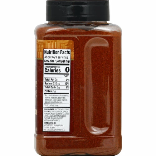 Spices (Including Paprika), Sugar, Onion, Garlic Powder, Modified Food Starch, Soybean Oil, Extractives of Paprika, Silicon Dioxide (Anti-Caking Agent).