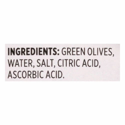 Green Olives, Water, Salt, Citric Acid, Ascorbic Acid.
