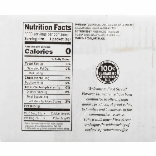 Dextrose, Saccharin, Cream of Tatar, Calcium Silicate (Anti-Caking Agent).