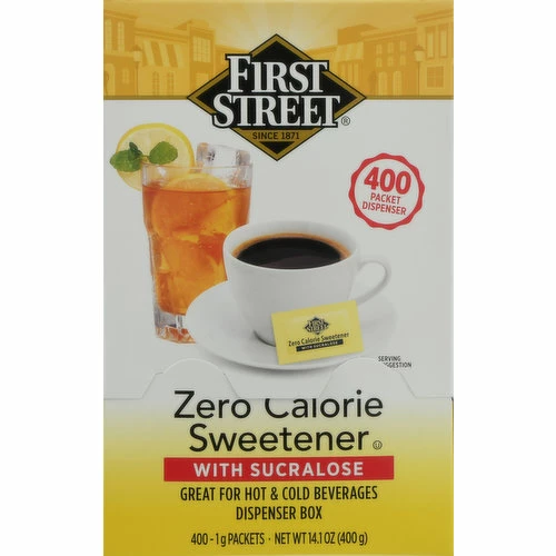 Since 1871. 400 packet dispenser. Great for hot & cold beverages dispenser box. Welcome to First Street! For over 145 years we have been committed to offering high quality products, at great value, to families and businesses in the communities we serve. Take a walk down First Street and enjoy the wide variety of exclusive products we offer.
