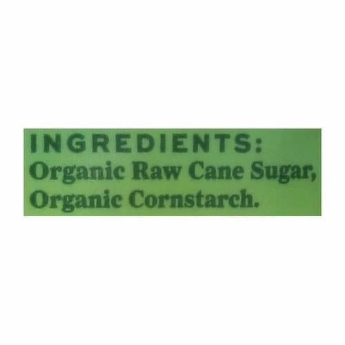 Organic Raw Cane Sugar, Organic Cornstarch.