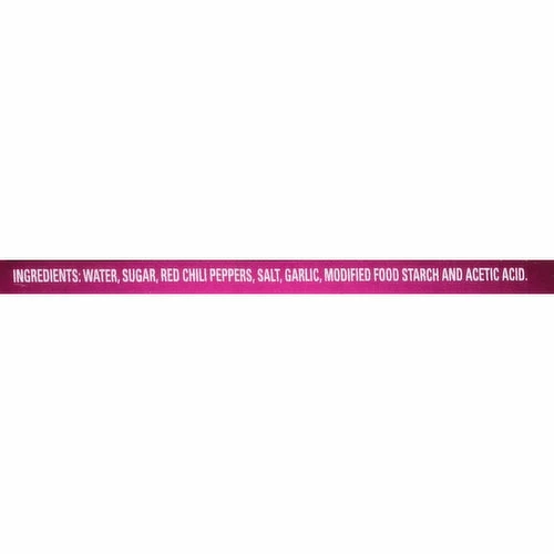 Water, Sugar, Red Chili Peppers, Salt, Garlic, Modified Food Starch and Acetic Acid.