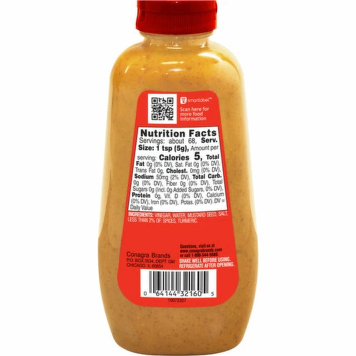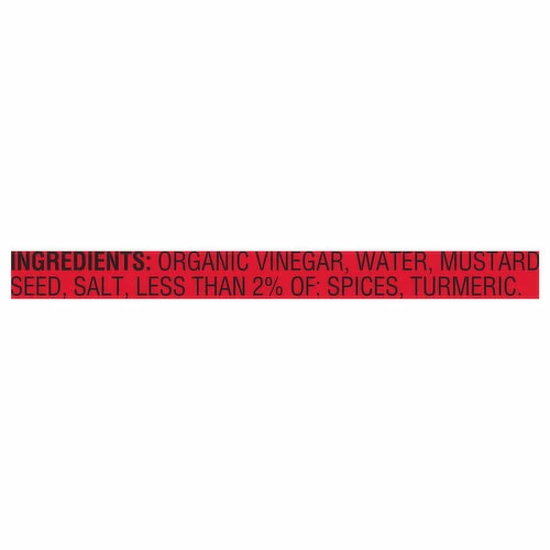 Vinegar, Water, Mustard Seed, Salt, Less than 2% of: Spices, Turmeric.