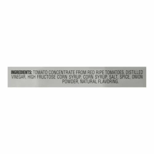 Tomato Concentrate from Red Ripe Tomatoes, Distilled Vinegar, High Fructose Corn Syrup, Corn Syrup, Salt, Spice, Onion Powder, Natural Flavoring.