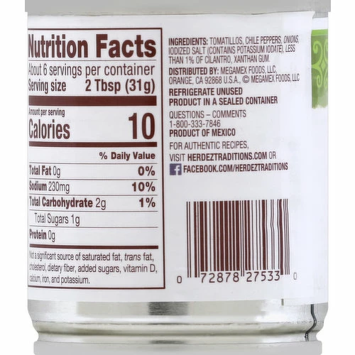 Authentic: Mexico’s No. 1 Salsa brand. Questions – comments 1-800-333-7846. For authentic recipes, visit herdeztraditions.com or Facebook: facebook.com/herdeztraditions. Product of Mexico.