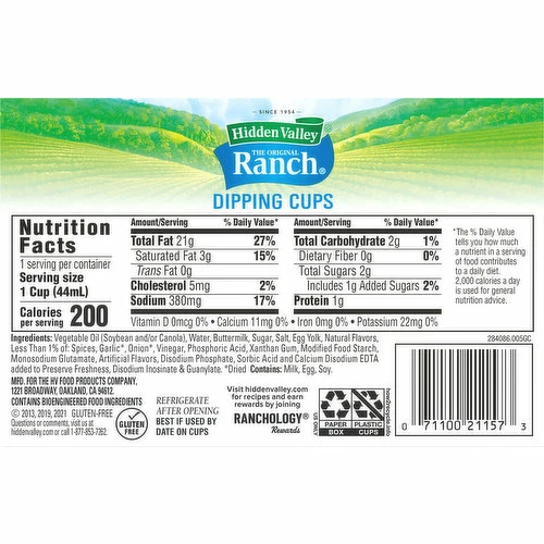 8 single cups. Since 1954. America’s favorite ranch. Ready to go!