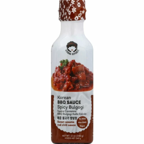 No MSG. All natural. Chef’s Recipe: J1 Korean BBQ Sauce comes from our master chefs secret recipe. J1 Spicy Bulgogi Korean BBQ Sauce (Sweet Sesame & Red Chilli Sauce) is so delicately balanced with chilli pepper, sesame oil and fruit purees that you will taste the exquisite hammy of sweetness and spicy flavor. www.jayone.com. Product of Korea.