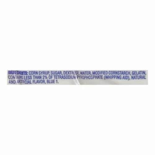 Corn Syrup, Sugar, Dextrose, Water, Modified Cornstarch, Gelatin, Contains Less than 2% of Tetrasodium Pyrophosphate (Whipping Aid), Natural and Artificial Flavor, Blue 1.