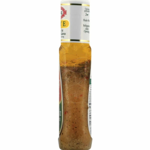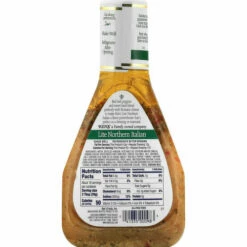 Gluten free. 60% less fat. 55% fewer calories than regular dressing. Fat Per Serving: This product 4.5 g – regular dressing 12 g. Calories Per Serving: This product 50 – regular dressing 120. Steak house 1941 dressing. Red bell peppers and sweet basil blend perfectly with Romano cheese to make Ken’s lite Northern Italian a flavor powerhouse that’s perfect as a dressing or marinade. Ken’s a family owned company. Satisfaction guaranteed or your money back from Ken. www.kensfoods.com. Questions/comments? Please include complete best when purchased by date. Call 1-800-645-5707 M-F 9am-5pm EST. www.kensfoods.com. Product of USA.