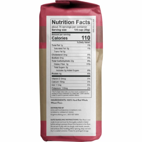 100% Hard Red Whole Wheat Flour.