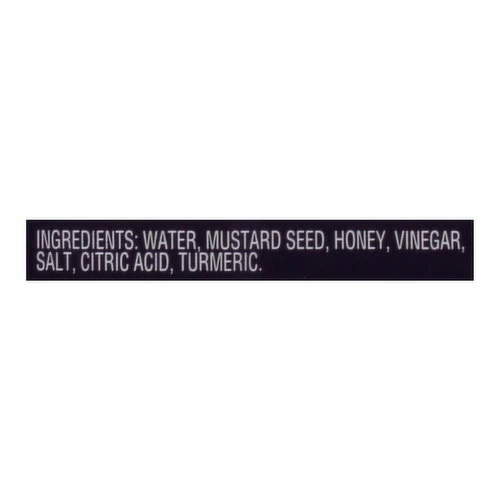 Water, Mustard Seed, Honey, Vinegar, Salt, Citric Acid, Turmeric.