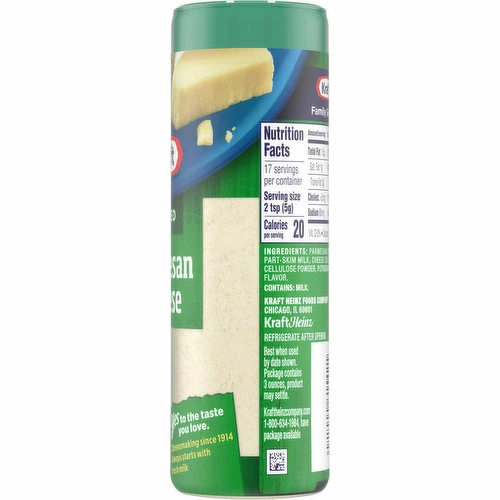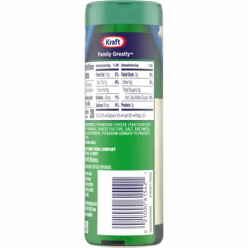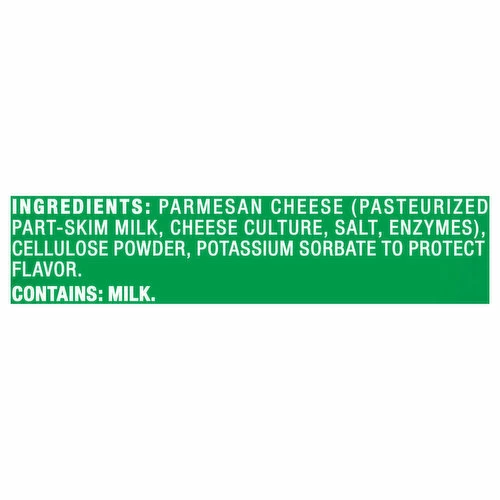 Parmesan Cheese (Pasteurized Part-Skim Milk, Cheese Culture, Salt, Enzymes), Cellulose Powder, Potassium Sorbate to Protect Flavor.