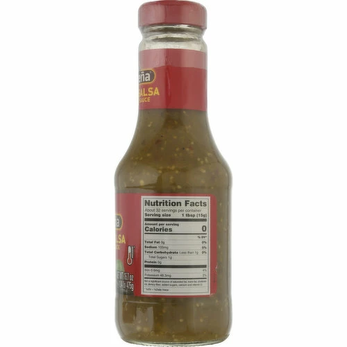 Tomatillos, Jalapeno Peppers, Onions, Iodized Salt, Coriander, Arbol Peppers, Tartaric Acid and Garlic.