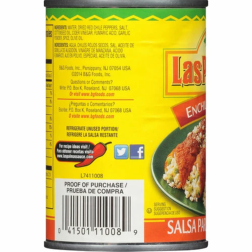 Use Las Palmas Medium Red Enchilada Sauce to make delicious Mexican staples with a medium level of spice to enhance but not overpower your enchiladas. Las Palmas was originally conceived in 1922 in Ventura, California, by Rosa Ramirez, who started making her delicious “enchilada sauce” from an old family recipe she refined. Her flavorful sauce became an instant hit among her neighbors and friends. Encouraged by this success, Rosa moved beyond the confines of her kitchen and founded the Ramirez & Feraud Chili Company. Today Las Palmas has grown from its humble beginnings, but remains authentic to its roots, using only the highest quality chiles and other fresh ingredients.