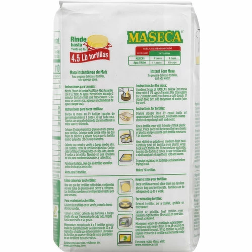 Gluten free. Corn: A gluten free food. No cholesterol. No trans fat. Yields up to 4.5 lb tortillas. No preservatives added. www.mimaseca.com. www.azteccamilling.com.