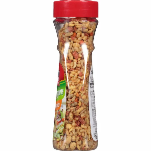 McCormick Crunchy and Flavorful Salad Toppins™ is great for taking classic salads to new levels. This flavorful topping is also a welcome addition in chicken salad, tuna salad and pasta salad too. The satisfying crunch of sunflower seeds, crisp rice, onion, and carrots provide a wonderful, tasty texture in any dish. This topping also adds an unusual twist to baked or mashed potatoes. This McCormick Crunchy and Flavorful Salad Toppins™ is in a Plastic bottle that is 3.75 ounces. Store this shelf-stable item at an ambient temperature.