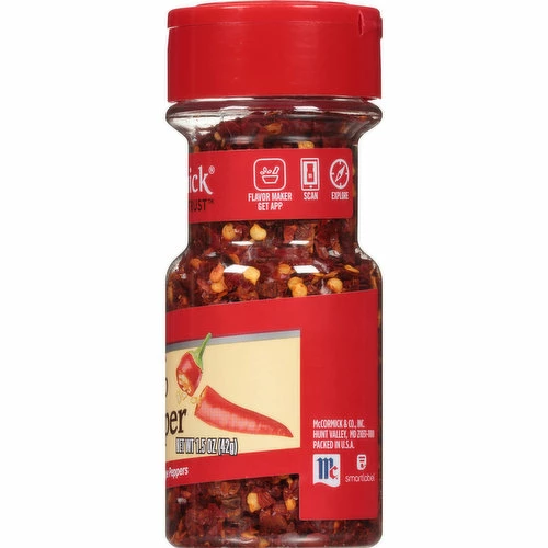 A pinch of McCormick Crushed Red Pepper adds fiery fresh heat and a zesty flavor boost to any dish. It’s the perfect companion to pizza, eggs, pasta sauce, tacos, stews, casseroles, soups and so much more. McCormick Crushed Red Pepper always starts with whole, ripe peppers. We blend the optimal levels of seeds and pods to deliver bold flavor and balanced heat. Pure crushed red pepper has a vibrant, red color from the flakes and is lightly flecked with yellow seeds. It has a slightly fruity, chili pepper aroma with a consistently spicy heat. Add just a pinch to kick up the flavor of your favorite foods. Or use to add heat to so many world cuisines, from Thai and Szechuan to Indian and Ethiopian.