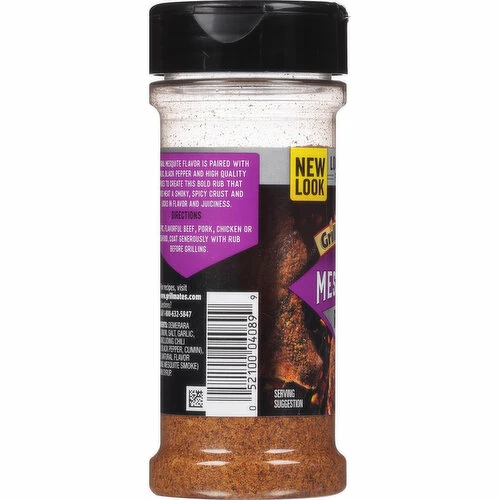 Spice up dinner time with a robust blend of onion, peppers and mesquite smoke. For smoky, bold flavor, Grill Mates Mesquite Rub is a must. When it comes to America’s #1 grilling seasoning, the taste does the talking — you do the grilling. Our bottle is designed with a dual flip-cap to shake or sprinkle flavor with a wide mouth for a measuring. Shake this rub onto whatever you’re grillin next, whether it’s beef, pork, chicken or seafood, you’re the master of the grill. Just 8 tbsp to 1 whole chicken breast locks in juicy flavor with a smoky, spicy crust. Applied at the grill or as an overnight marinade, it’s absorbed directly into the meat as it heats up, leaving you with a tender, tasty, flavor-crusted meal every time.
