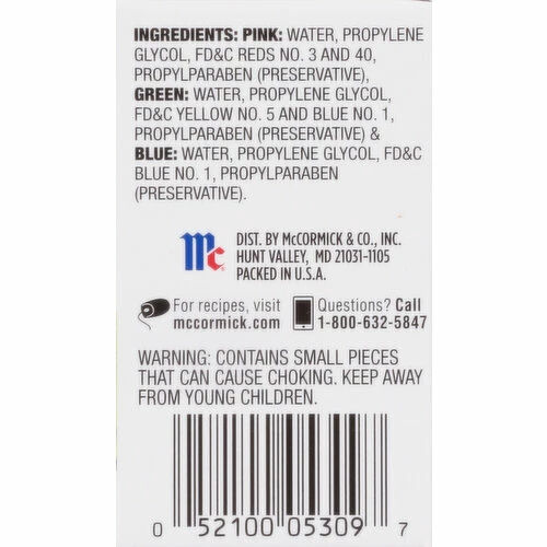 McCormick Neon Food Coloring and Egg Dye Set, McCormick Neon Food Colors Egg Dye adds pizzazz and fun to family occasions, holiday baking, and arts and crafts projects. Use the three pastel food colors pink, green, and blue to make beautifully tinted frostings, cakes, cookies, confections, and neon egg dyes. Unleash your color creativity with our neon food colors to make eye-catching Easter eggs, whimsical unicorn cupcakes, colorful birthday cakes, or a bouquet of Valentine’s Day cookie pops. The color chart on the package gives you a full palette of color options, with hues like kelly green, cornflower, and dusty rose, for tinting cakes, icings, and Easter eggs. It tells you exactly how to mix and match drops of neon food dye to get the perfect color every time and decorate like a pro.