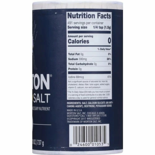 Salt, Calcium Silicate (an Anti-Caking Agent), Dextrose, Potassium Iodide.