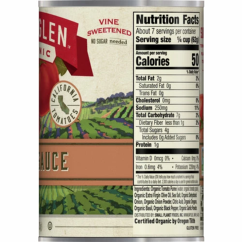 Combine the delicious taste of organic tomatoes with organic extra-virgin olive oil, sea salt, onion, oregano, basil, black pepper, and garlic to create a thick and tasty tomato sauce that should be a pantry staple for making pizza, stews, and chili. This seasoned pizza sauce is USDA Certified Organic, Non-GMO Project Verified and gluten free for a tasty flavor. It’s perfect for making delicious homemade pizzas with a rich and flavorful sauce.Muir Glen organic tomatoes are an easy and delicious way to upgrade your favorite recipes. These organic tomatoes are grown in California and canned quickly for peak freshness.