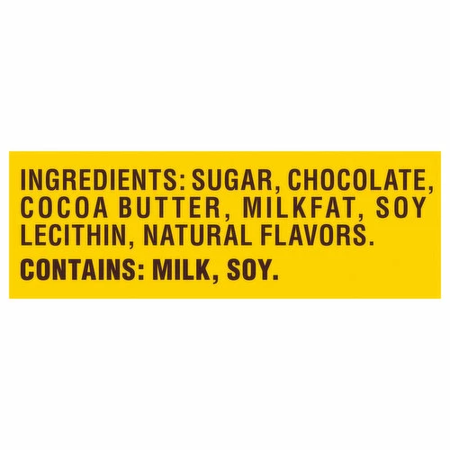 Sugar, Chocolate, Cocoa Butter, Milkfat, Soy Lecithin, Natural Flavors.