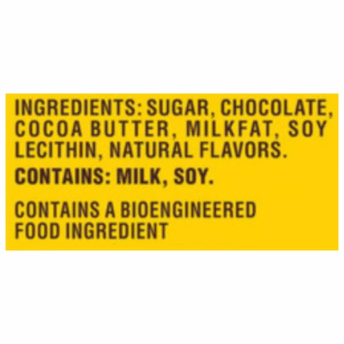 Sugar, Chocolate, Cocoa Butter, Milkfat, Soy Lecithin, Natural Flavors.