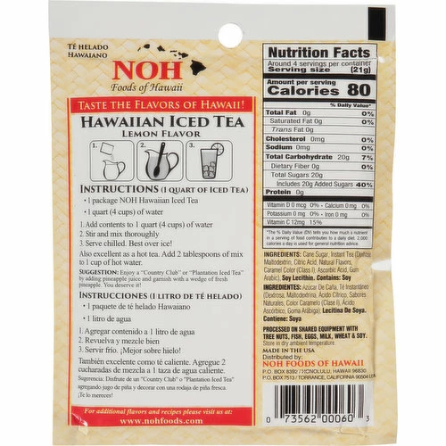 Cane Sugar, Instant Tea (Dextrose Maltodextrin, Citric Acid, Natural Flavors, Caramel Color (Class I), Ascorbic Acid, Gum Arabic), Soy Lecithin.