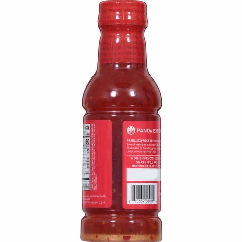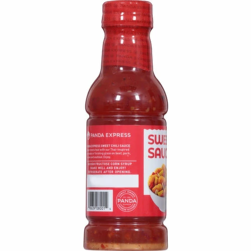 Chinese kitchen. Panda Express Sweet Chili Sauce. Sweet meets heat with our Thai-inspired marinade or finishing glaze on beef, pork, chicken and seafood. Enjoy. No high fructose corn syrup. Est. 1983. Panda Express. Family owned. Product of U.S.A.