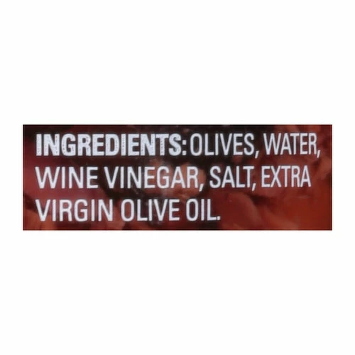 Olives, Water, Wine Vinegar, Salt, Extra Virgin Olive Oil.