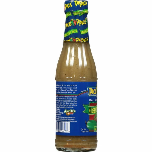 Water, Roasted Green Chile Peppers, Roasted Green Jalapeno Peppers, Tomatillos, Less than 2% of: Salt, Modified Food Starch, Sugar, Apple Cider Vinegar, Distilled Vinegar, Garlic Powder, Citric Acid, Spices, Onion Flakes, Xanthan Gum, Dextrose, Extractives of Cilantro, Natural and Artificial Flavors, Sodium Benzoate and Potassium Sorbate (Preservative).